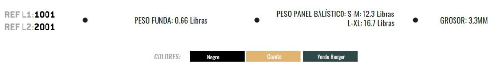 Dos paneles balísticos removibles en frente y espalda acorde a la NIJ 0101.07 de protección,